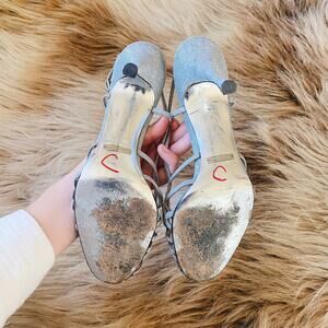 Dolce & Gabbana Strappy Glitter Silver Slingback Sandals Heels