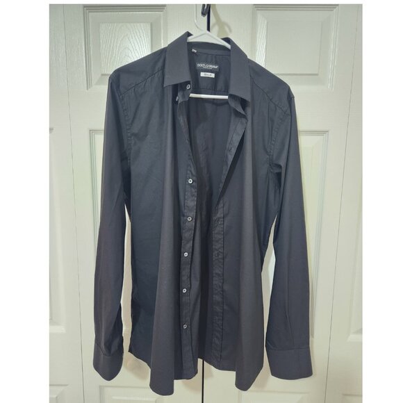 Dolce & Gabbana Stretch Cotton Gold Fit Shirt Black Size 42 Men