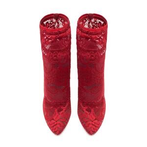 Dolce & Gabbana Stretch Lace Sock Ankle Boots Booties Red 38