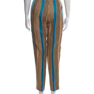 Excellent condition DG pants in a woven striped fabric (cotton?). Two buttons and zipper at waist. One button is cracked but still functional.