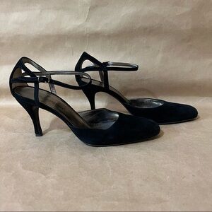 Dolce & Gabbana | Suede Ankle Strap Almond Toe Heels Black Size 7.5 (EU 37.5)