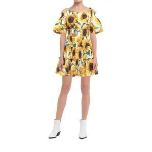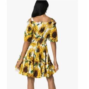 This Dolce & Gabbana Tiered Sunflower Print Poplin Mini Dress from the autumn-winter collection, large sunflowers bloomed.
