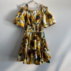 Dolce & Gabbana Sunflower Cotton Poplin Mid Length Dress, Size IT46/ US 8-10