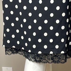 This is a beautiful Dolce & Gabbana Sz 42 US 6 Lace Peekaboo Trim Polka Dot Knee Pencil Skirt. 96% silk 4% Elastine