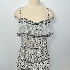 Dolce & Gabbana Tiered Ruffle Floral Silk Dress Sheer | Size: 44