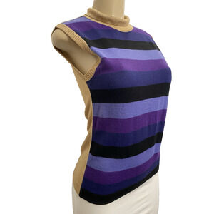 Dolce Gabbana Top Blouse Knit Sleeveless Gold Purple Striped Mock Neck S