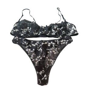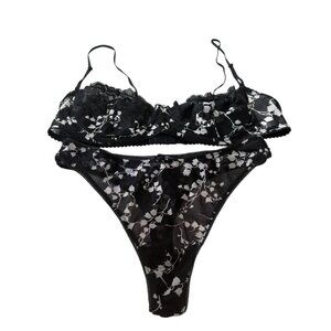 Dolce Gabbana VTG Vintage Black White Bla Thong Set floral unlined Medium Size 3