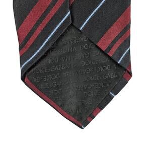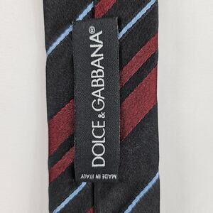 Dolce & Gabbana Vintage Black & Red Striped Tie Classic Style 95% Silk Italy
