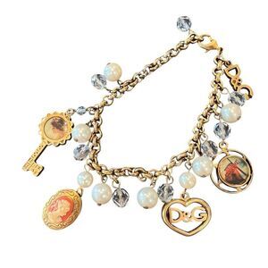 Dolce & Gabbana Vintage Gold and White Baroque-Inspired Charm Bracelet