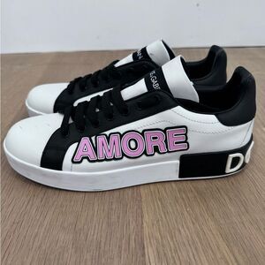 Dolce & Gabbana White Love Logo-Embossed Leather Sneakers Size IT 40