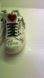 Chic sneakers featuring a striking red heart. White base with black laces. Elegant gold details.