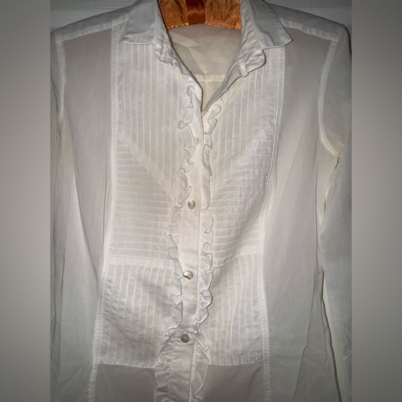 Dolce & Gabbana White Ruffle Button-Down Blouse no size tag. See measurements