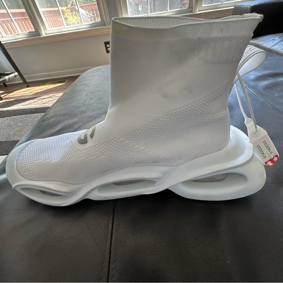 Stylish white sneakers with a unique design. Features a high-top sock-like upper. These are authentic dolce and Gabbana wave sneakers and then then verified authentic by LegitApp also has original serial number tag as well as serial number inside the shoe as identified in the pictures Quick Selling average price on the Internet for this particular shoe is about 575 preowned.