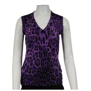 Dolce & Gabbana Womens Leopard Print V Neck Sweater Vest Med IT 42 Purple Wool
