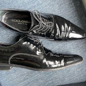 Dolce & Gabbana black patent leather dress shoes, have been worn to weddings, they still have a long life ahead of them. only need to be cleaned. in good condition. size UK7 US8, original box and dust bag included