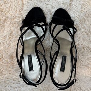 Dolce & Gabbana black strappy heel sandals black suede SZ 38.5 or 8 sexy style
