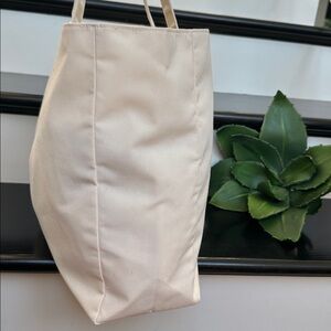 This Dolce & Gabbana canvas tote bag is brand new and never used, making it an exceptional find for any luxury lover. Crafted from ivory canvas fabric, it features a gorgeous gold-tone DG sacred heart emblem on the front that adds a touch of signature elegance. The top closes securely with a matching fabric tie, keeping your belongings safe while maintaining a relaxed, effortless style. The interior is fully lined in coordinating fabric and is spotlessly clean, with plenty of room for all your essentials, whether for travel, shopping, or everyday errands.