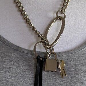 Purchased in the Dolce & Gabbana Outlet in Italy. This D&G chain part of this accessory is 21.5 inches (without the lock). The leather straps with D&G initials measures 9 ". The D&G letters measure 2 inches each. It is not long enough to be a belt; but you could add it to a belt. It can be a great accessory to jeans, pants or skirts that have beltloops. Also, it can be worn around the neck, or even looped and hanging from a purse. It is silver-toned and it has weight to it. (6.5 ounces or .42 of a pound) Never worn or used at all. Excellent condition.