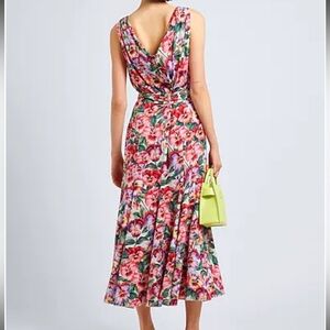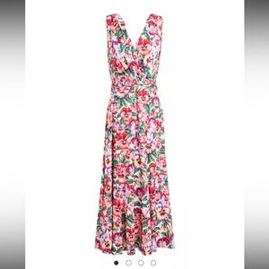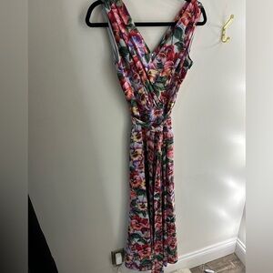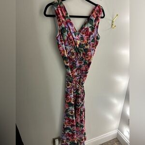 Vibrant floral maxi dress with a wrap design. Perfect for summer occasions.