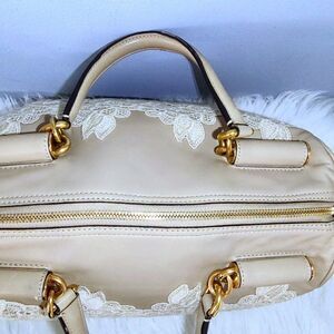 Absolutely stunning Dolce & Gabbana shoulder bag in the softest leather with lace trim. This is a special one! Leather is buttery soft and the lace gives it a sweet touch. Super clean condition; no callouts other than very minor corner rubbing. EUC overall.