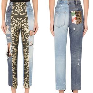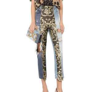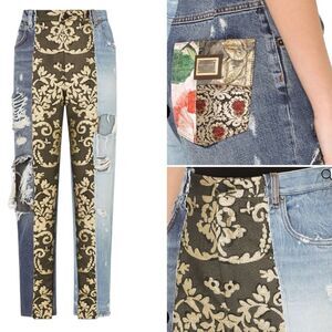 Dolce & Gabbana ~multi-distressed-brocade-relaxed-crop-jeans~missing brand patch