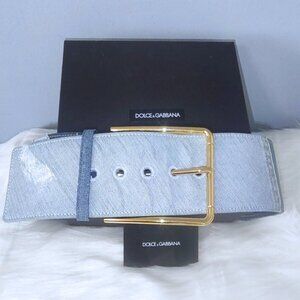 Dolce & Gabbana patch denim wide belt sz 75 S w/box & auth card EUC+