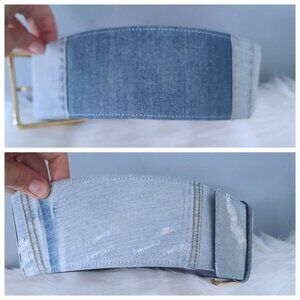 Elevate your style with this distressed Patch Denim Dolce & Gabbana wide belt. Striking pattern and goldtone hardware, and the width makes it a standout piece. Comes with its box, tags, and authenticity card. I might have the dust bag and if I can find it, I'll send it. In excellent preloved condition, only used twice. Near new.