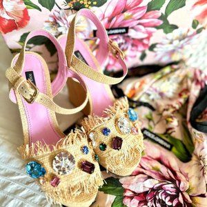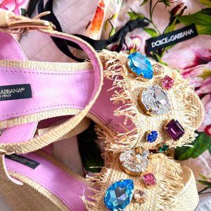 Platform shoes made of raphia and cristal ornaments. Worn only 2 times