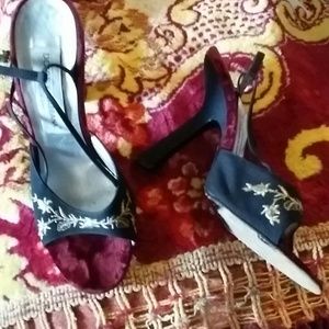 Dolce & Gabbana velvet burgundy heels gold embroidery and black fabric size 36.5 made in italy
