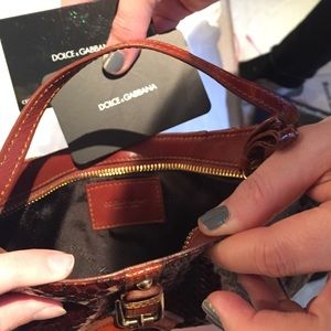 Authentic. Evening bag & mint condition. 8x5 inches burgundy + tan. Listed as brown though.
