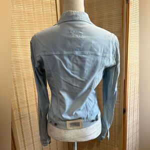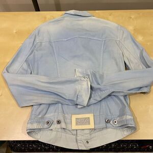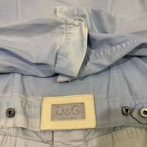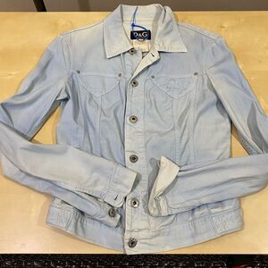A classic light blue denim jacket by D&G, featuring a traditional jean jacket design with a collar and buttoned front, made of denim fabric for a casual look.