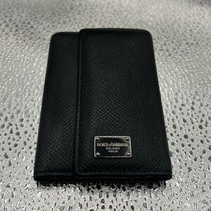 Dolce & Gabbana Foldover Key Holder Card Case Black Leathe Luxury Minimalist