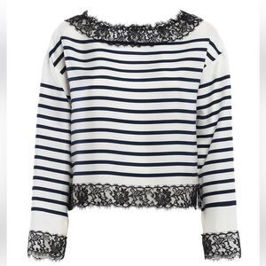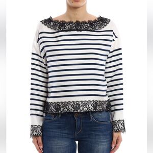 Dolce& Gabbana sailor style striped silk blouse, lace setailed, M-L