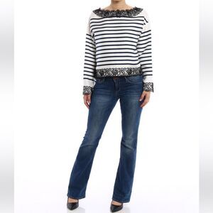 Elegant striped top with lace trim. Perfect for casual outings. New, no tags