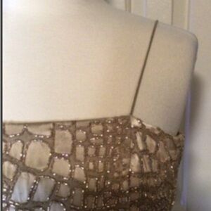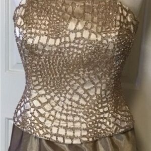 Dolce Jovani Gold Beaded Evening Gown & Shawl Size 14 in Like New Condition