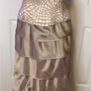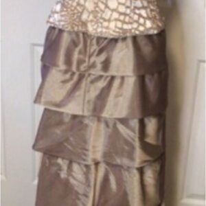 I LOVE THIS GOWN and it will look great on YOU! Beaded on top, six tiers on the bottom, straps attached. Removable shawl included. Size 14. In perfect condition! If interested, talk to me! Dolce Jovani gown. STUNNING!