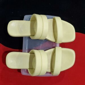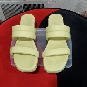 Dolce Vita Adore Leather Puffer Sandals in Neon Yellow Size 9