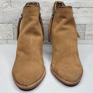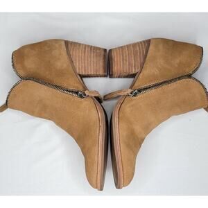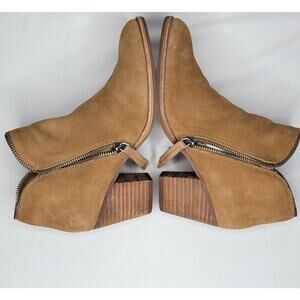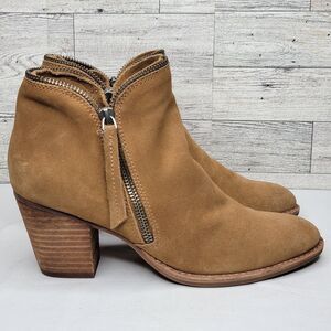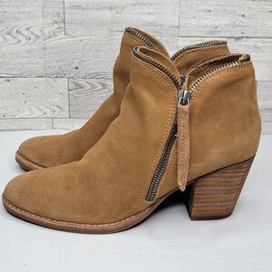 Dolce Vita Ankle Booties Size 6.5M Double Zip 2.5" Block Heel Tan Suede