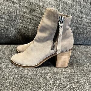Dolce Vita Ankle Boots Womens 6 Taupe Suede Lana Zip Booties Stacked Heel Casual