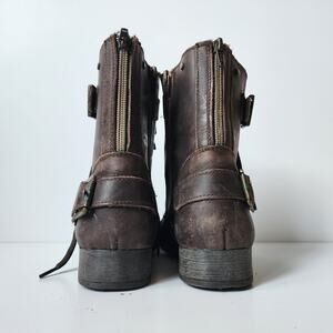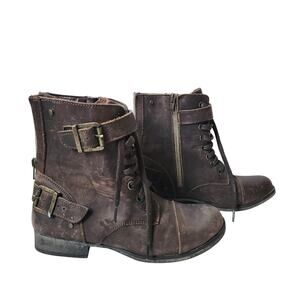 Dolce Vita Ankle Boots Womens Size 6.5 Brown Leather Buckle Zip Lace Up