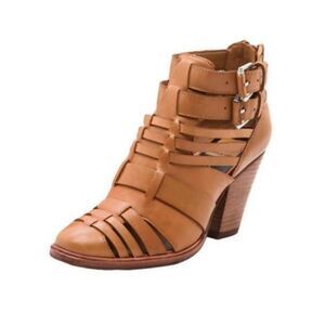Dolce Vita Anthropologie Tan Brown Leather Helsa Caged Buckle Ankle Bootie 6.5