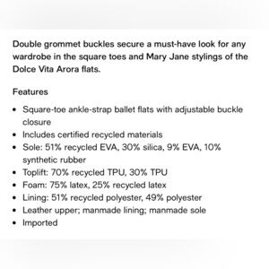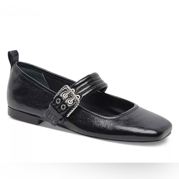Dolce Vita Arora Black Leather Flats with Silver Buckle, Square Toe, Ballet, 6