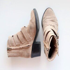 Dolce Vita Beige Suede Leather Almond Toe Block Heel Ankle Boots / Booties 7