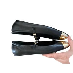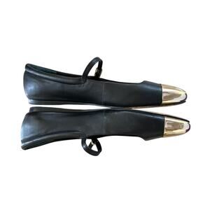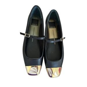 Dolce Vita Black Leather Gold Cap Toe Mary Jane Ballet Flat