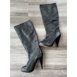 Dolce Vita Black Leather Heeled Boots Size 7 Platform Knee High