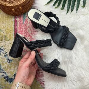 Dolce Vita Black Square Toe Braided Leather Block Heeled Sandal Heels 9