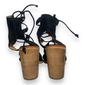 Dolce Vita Black Strappy Sandals Women Size 6 Genuine Suede Block Heels Lace Up