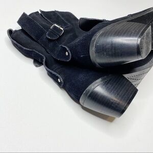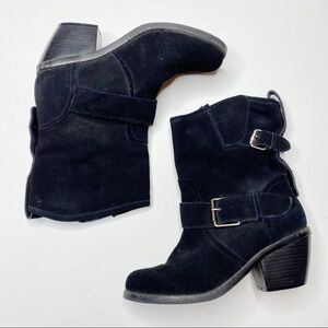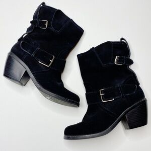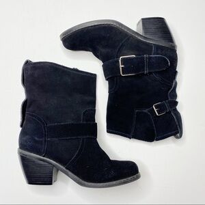 Dolce Vita Black Suede Leather Heeled Booties with Silver Buckle Details