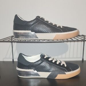These Dolce Vita sneakers showcase a striking black and white color palette, crafted with a blend of premium materials for a contemporary look. The low-top design is enhanced by a unique two-tone sole, providing both style and comfort. Ideal for everyday wear, these sneakers effortlessly elevate any casual ensemble