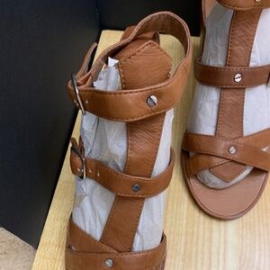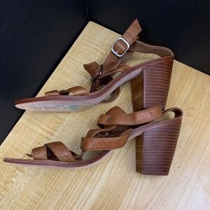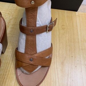 Dolce Vita Block Heel Platform Slide Sandals, women's Nude brown 8.5 Leather New